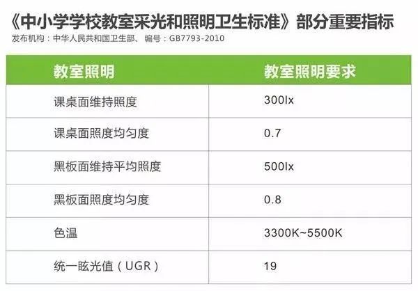 以學校為例,《中小學校教室采光和照明衛(wèi)生標準》GB7793-2010規(guī)定中有: