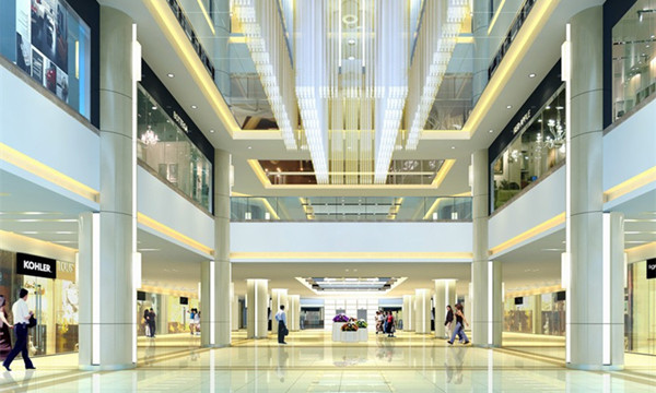 中庭是商場的緩沖區域和公眾活動空間,并增加商場的開闊感,調節空氣質量,提升整個商場的空間質量和層次。因此中庭照明設計應具有一定的藝術性,裝飾空間并營造舒適的環境。中庭建設一般都有自然采光的設計,但是夜間營業必須依靠人工照明。空間高大的中庭頂部宜采用led筒燈照明,為改善頂部照明的不足,墻壁也可以設置壁燈照明,同時也可以豐富空間的層次。