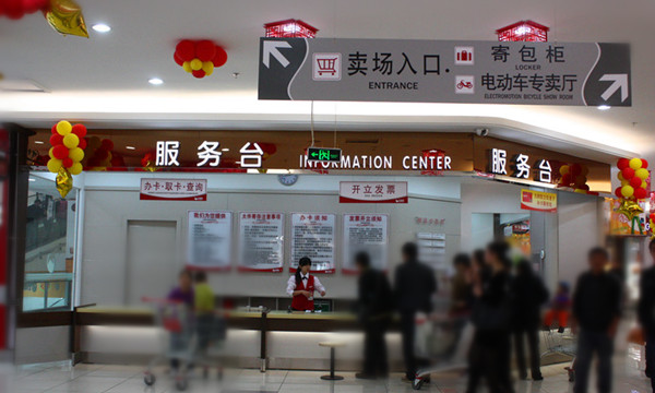 服務臺是給顧客提供貼心服務的地方,例如開發票、寄存等等。可以采用led筒燈照明,達到較高的亮度,以滿足服務臺書寫亮度要求,通常大型商場服務臺背景墻裝飾體現商場企業定位與文化,應采用導軌射燈或洗墻燈加以重點照明,使其突出。