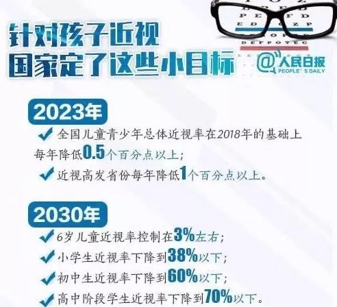 從國家和民族未來的高度出發,國家相關部門專門對兒童青少年視力健康問題作出重要指示。2018年8月30日,經國務院同意,教育部、國家衛生健康委員會、國家體育總局等相關政府部門聯合印發《綜合防控兒童青少年近視實施方案》。