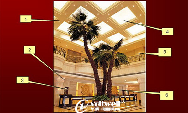 此文關(guān)鍵字:華輝照明 酒店大堂照明 天花射燈