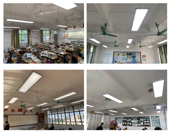 這次江門四所學(xué)校的教室照明改造使用華輝led護眼教室燈和led護眼黑板燈,教室照度及照度均勻度遠優(yōu)于國家標(biāo)準(zhǔn),光線更柔和;采用防眩光設(shè)計,眩光值<16;色溫5000K,接近自然日光,提高學(xué)習(xí)效率;出光均勻不刺眼;內(nèi)置恒流驅(qū)動器,有效杜絕光頻閃危害;Ra>95,色彩還原性高,整燈采用RG0教室專用防藍光燈珠,避免不良燈光對學(xué)生視力造成危害!