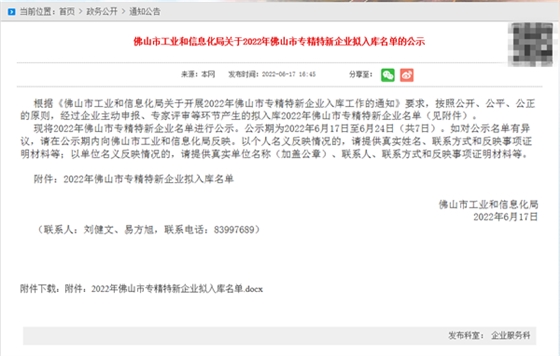 榮獲佛山市專精特新企業!