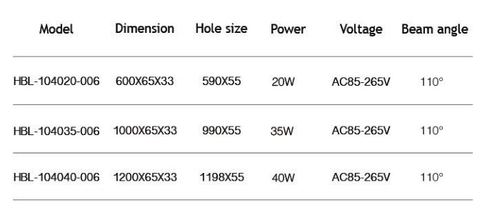 | 產品型號:HBL-104040-006 外形尺寸:1200X65X330mm 開孔尺寸:1198X55mm 功率:40W 色溫:CCT+RGB 燈珠類型:2835+3528 輸入電壓:AC85-265V 發光角度:110° 主體材料:冷軋板 顏 色:白色/黑色 驅 動:外置驅動 |