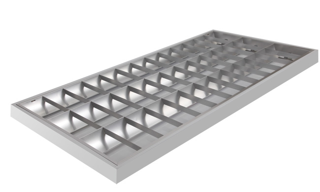 1、T8 普及型格柵燈盤燈體表面采用磷化噴塑工藝處理,防腐性能好,不易磨損,褪色,反射罩采用光學原理深弧型設計,反射率高。有啞光鋁、鏡面鋁、不銹鐵、不銹鋼、腹膜鐵等材料可供選擇.