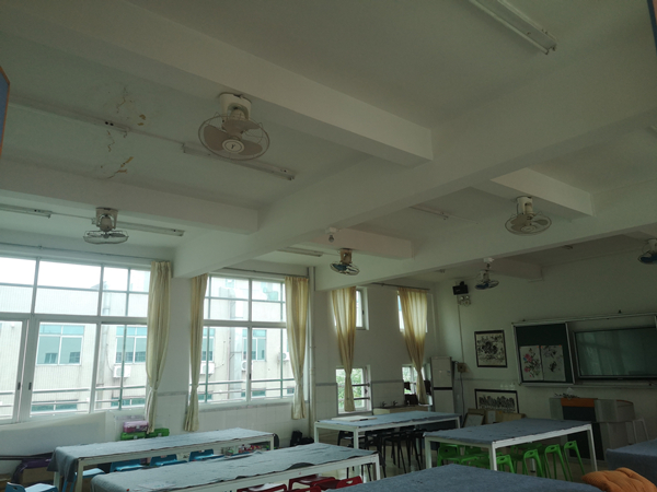 教室采用傳統的熒光燈管,教室里部分區域的光線偏暗,燈光照度不均勻,沒有設置黑板專用燈具。學生長期在照度不足的光環境下學習,極易導致視覺疲勞,不利于學生視力健康,嚴重影響師生教學效率。